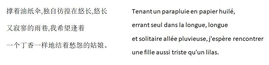 [9] Dài Wàngshū (1905 – 1950) est né à Hangzhou.  Il publia ce poème en 1927. Devenu francophone, il traduisit des œuvres de nombreux romanciers et poètes français en chinois.