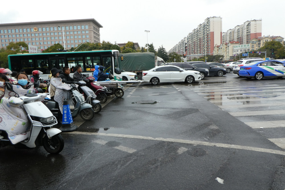 La circulation était dense et la priorité était manifestement donnée aux voitures et aux scooters. J’attendais donc depuis quelque temps quand je vois passer au-dessus de ma tête un parapluie qui s’y arrête. Je me retourne. Deux jeunes filles en herbe, gloussant de leur audace, venaient de m’offrir un abri. Je les remercie chaleureusement. Peu de temps après, je vois ce parapluie remplacé par un autre, tenu cette fois par une seule jeune fille. Nous avions plus de place ! Nous sommes ainsi restés plusieurs minutes à attendre, sans pouvoir malheureusement nous dire grand chose. Quand enfin le feu se mit au vert, nous traversâmes la voie puis nos chemins se séparèrent. Je la remerciais, ce qu’à l’époque j’étais à peu près seulement capable de dire en chinois.