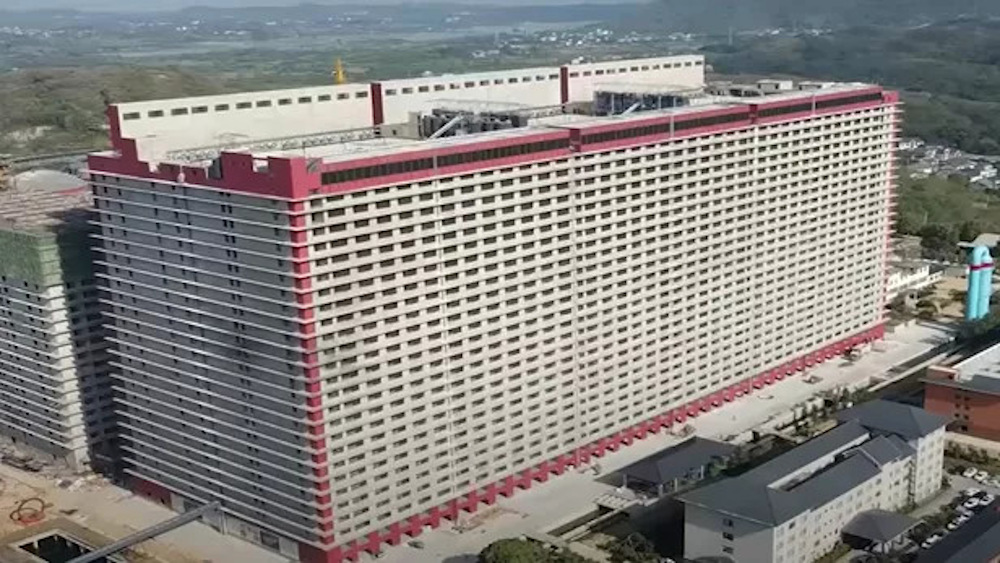 26 étages. 25 000 porcs à chaque niveau. Tour usine à cochons près de la ville d’Ezhou dans la province du Hubei. Source : Actualités Jímù 极目新闻