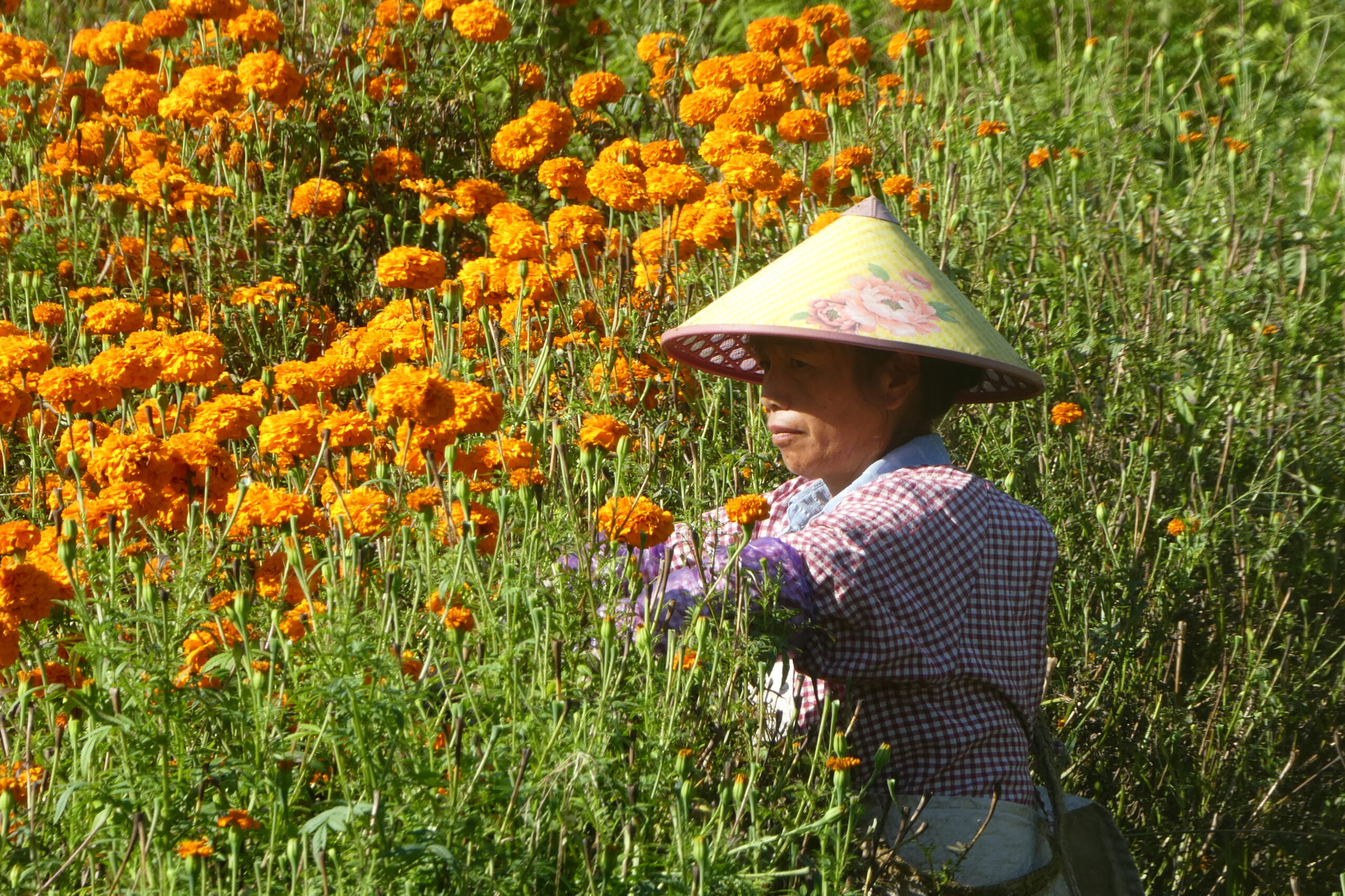 Le travail à la houe, le semis et le désherbage à Heshun, la cueillette d’œillets d’inde à Simola ou de feuilles de thé à Longjing, tout cela se fait à la main.