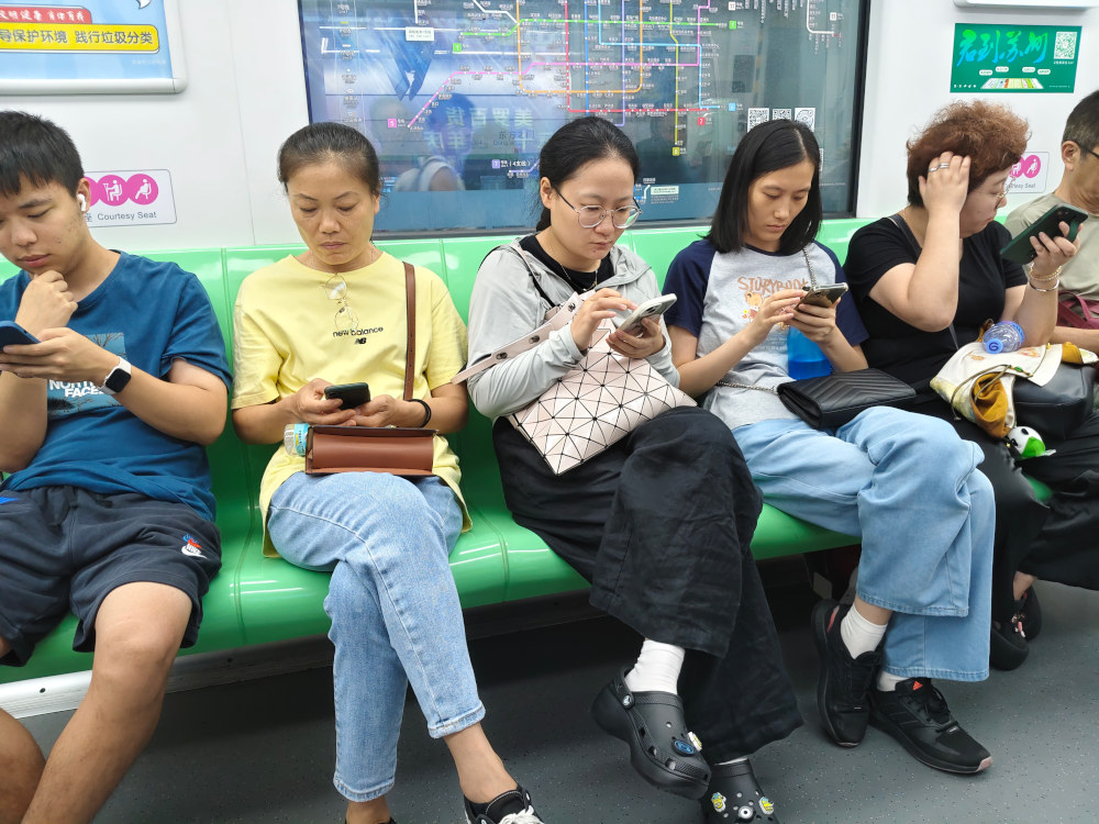 Dans le métro, les passagers s’ignorent les uns les autres. C’est avec leurs ordiphones qu’ils communiquent. Au restaurant, ce couple fait une pause, absorbé par des ailleurs. Il n’est pas sûr toutefois que la différence avec ce que l’on peut constater dans un métro ou dans un café parisien soit significative. L’air du temps, le même sous toutes les latitudes ?