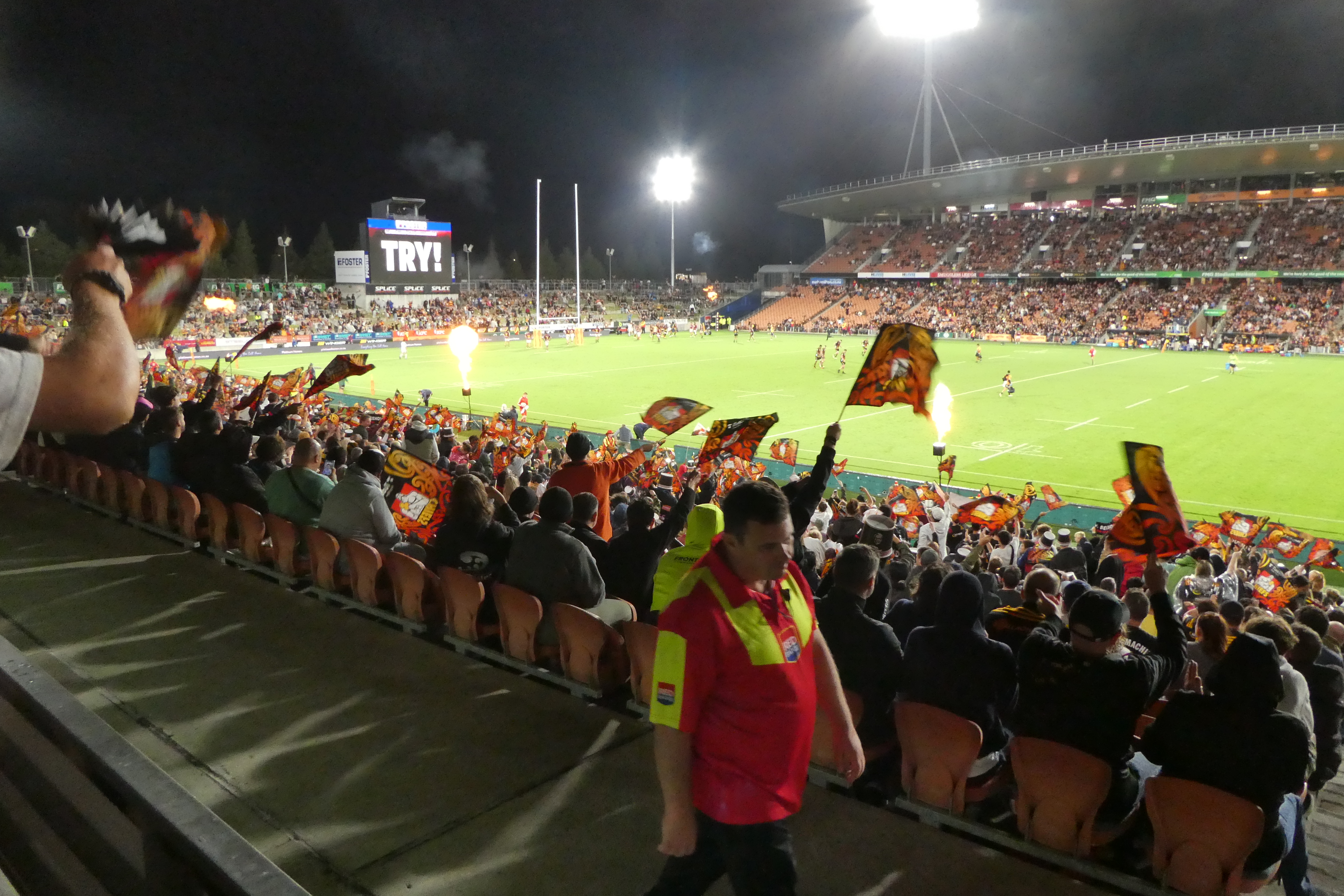 Ensuite Hamilton où je suis allé pour assister à un match de rugby du championnat Austral : les Chiefs, la franchise de la région d’Hamilton contre les Highlander, une franchise de l’île du Sud qu’ils ont battu assez nettement (28 à 7).