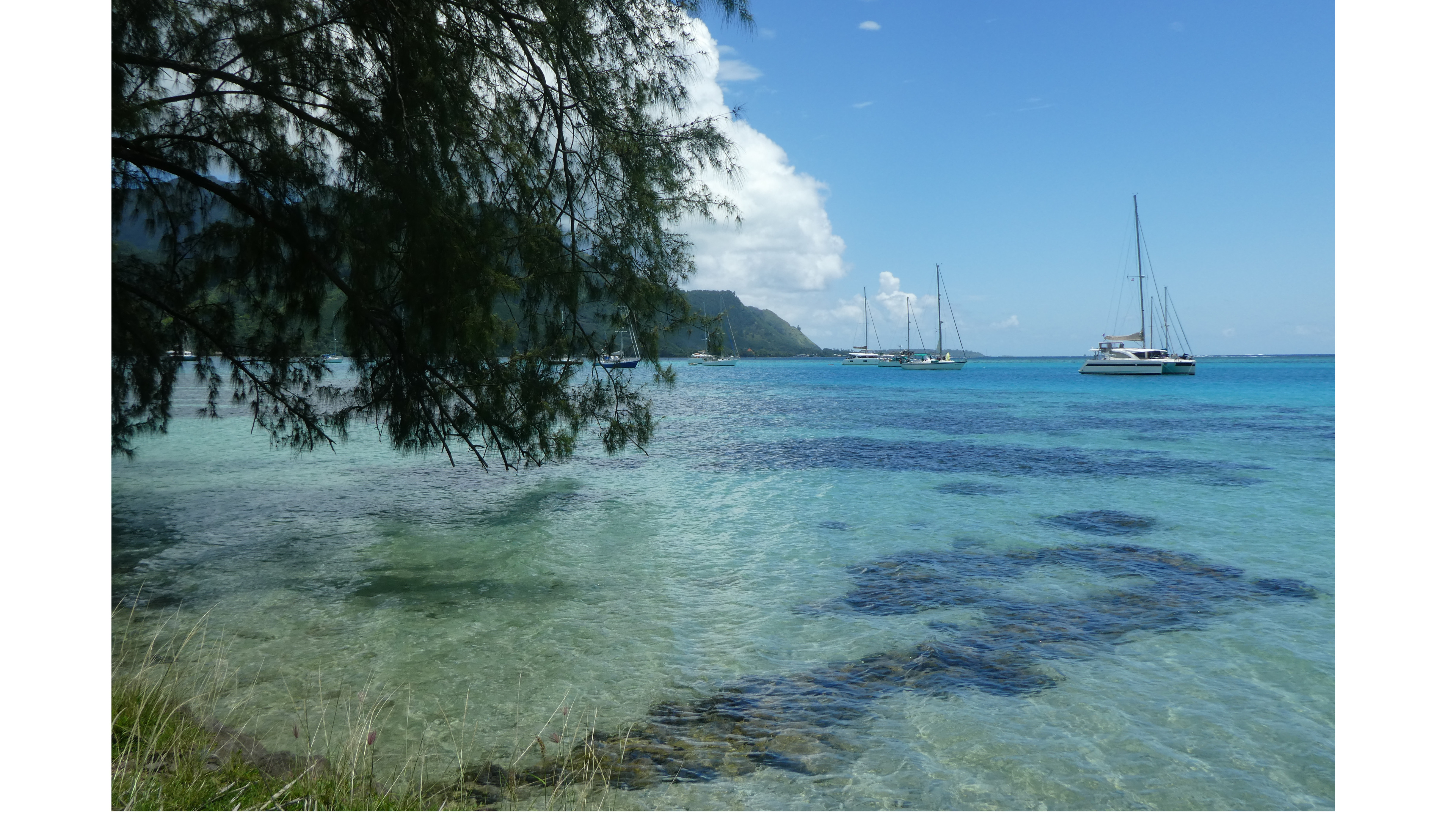Puis peu à peu les volcans s’affaissent ; une barrière de corail les entoure qui protège ces îles. C’est le cas de Moorea.