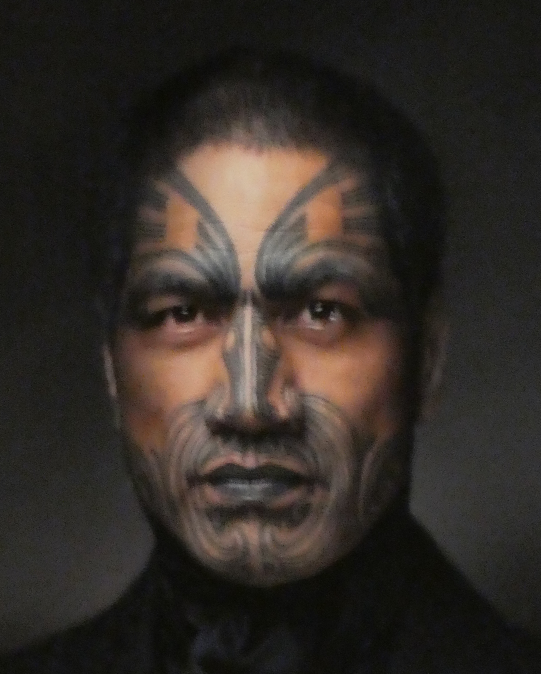 Voici les légendes des images de ce diaporama : photos 1 à 3 prises au hasard des rencontres de mon voyage / Photo 4 Victor Taurewa Biddle, présentateur Maori photographié par Lisa Reihana (Musée d’Auckland. Détail) / Photo 5 Fresque sur le mur d’une maison. Hiva Oa (Les Marquises) / Photo 6 Peinture d’un chef Mahori par Gottfried Lindauer 1895 / Photo 7 Homme de Nuku Hiva (Les Marquises). Gravure de 1813 / Photo 8 Pétroglyphe aux motifs géométriques d’Hiva Oa (Les Marquises)